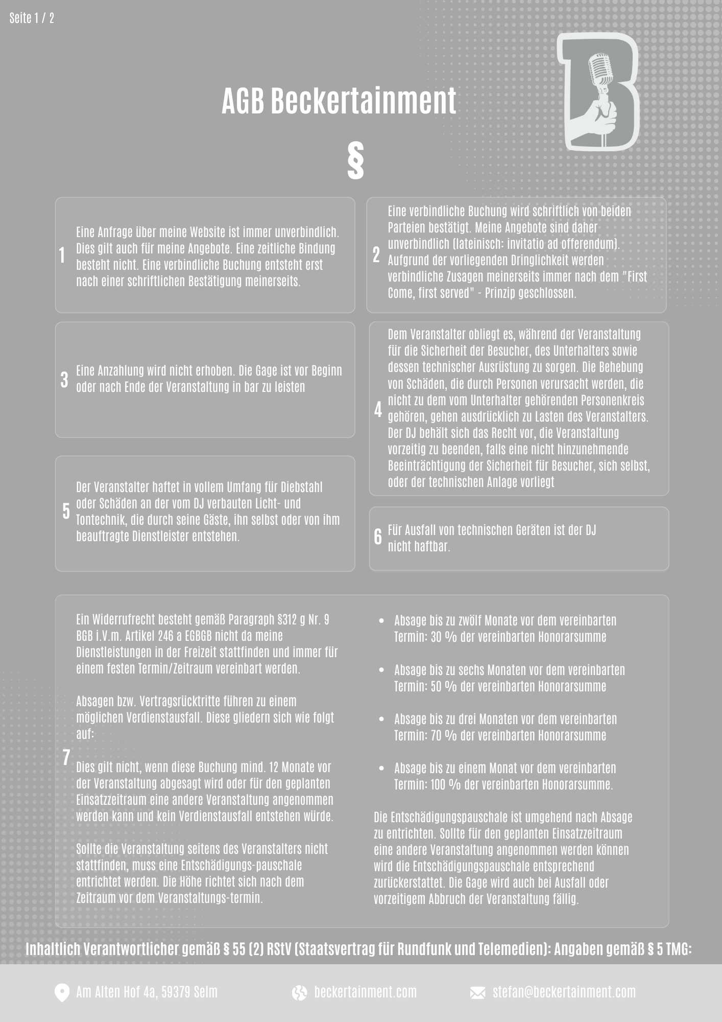 Grundsätzlich bin ich als Unternehmer nicht dazu verpflichtet allgemeine Geschäftsbedingungen auf meiner Internetseite zu verwenden. Um meinen Belehrungs- und Informationsplichten nachzukommen habe ich mich aber dazu entschlossen diese auch auf meiner Internetseite transparent zu veröffentlichen.